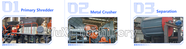The Scrap Metal Crushing & Recycling line is developed by Zhengzhou yuxi Machinery Company. The wasted metal (such as wasted iron, aluminium and engine casing ect) will be crushed, separated by the recycling line, after that, the wasted metal could be reused easily. YUXI Company has already got the national invention patent and utility model patent for this recycling line.